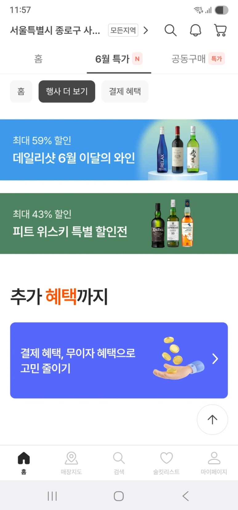와인 위스키 등은 첫구매 할인 제품들도 많네요